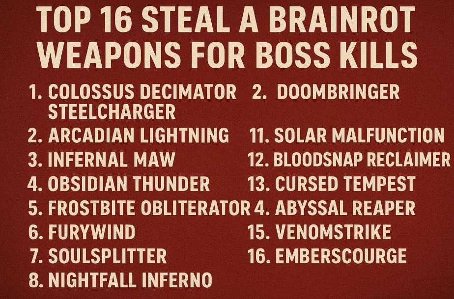 Discover the top 16 Steal a Brainrot weapons perfect for efficient boss kills and strategic gameplay tips.